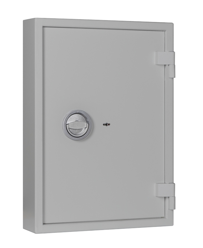 Certified security for your key storage. For managing keys in small and medium-sized businesses. Height-adjustable hook strips with inscription area. Ready for wall mounting with 4 holes in the back panel. Safe comes standard with high-security electronic lock with keypad. Double-walled door (58 mm thick) with 3-sided locking via locking bolts (20 mm diameter). Door opens up 90º and features internal door hinges.