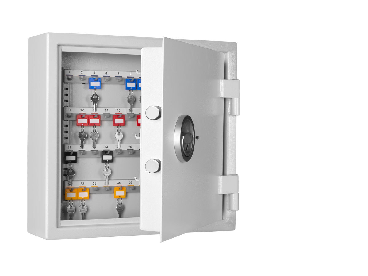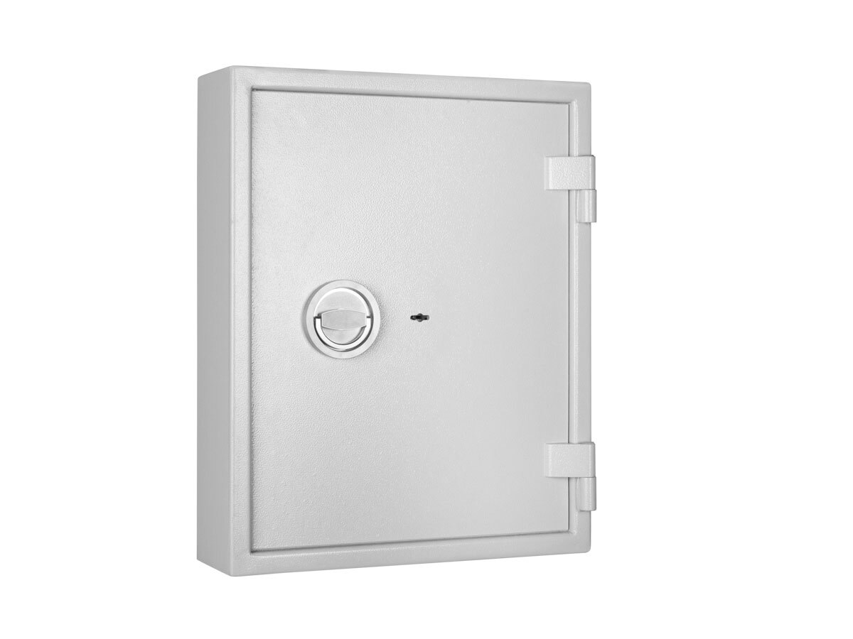 Zur sicheren Verwarung von Autoschlüsseln in kleinen und mittelständischen Betrieben. Diese Tresore sind mit einem Doppelbart-Hochsicherheitsschloss mit 2 Schlüsseln ausgestattet. Die Tür ist doppelwandig (58 mm dick) mit 3-seitiger Verriegelung durch Schließbolzen (20 mm Durchmesser). Die Feuerisolierung wird durch umlaufenden Feuerfalz gewährleistet.