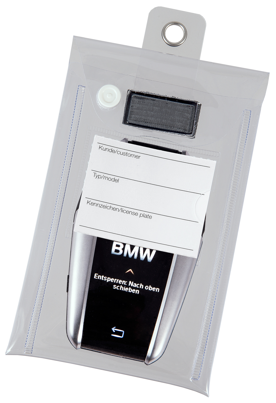 Univerzalni žep (z zapiralom) za vse ključe z zaslonom. Učinkovita zaščita pred praskami in drugimi poškodbami med obiskom v delavnici. S plombo, ki jo lahko naročite kot dodatno opremo, žep trajno zaprete in ga odprete šele ob prisotnosti stranke.
