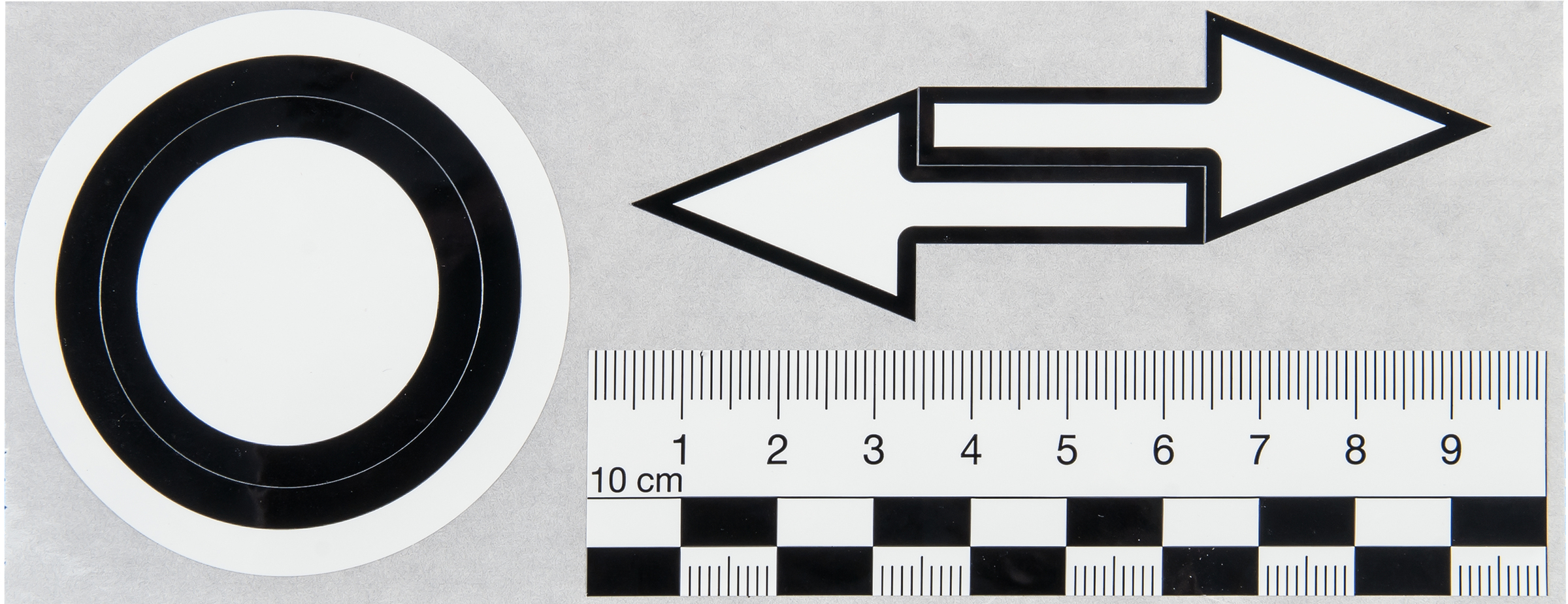 Komplet nalepk kot dokumentacijski pripomoček za označevanje škode in hkraten prikaz približnih velikostnih razmerij Dober oprijem tudi na nemagnetnih podlagah, kot so karoserijski deli iz lahkih kovin ali plastične prevleke. V kompletu: 2 puščici, 1 krog, 1 ravnilo