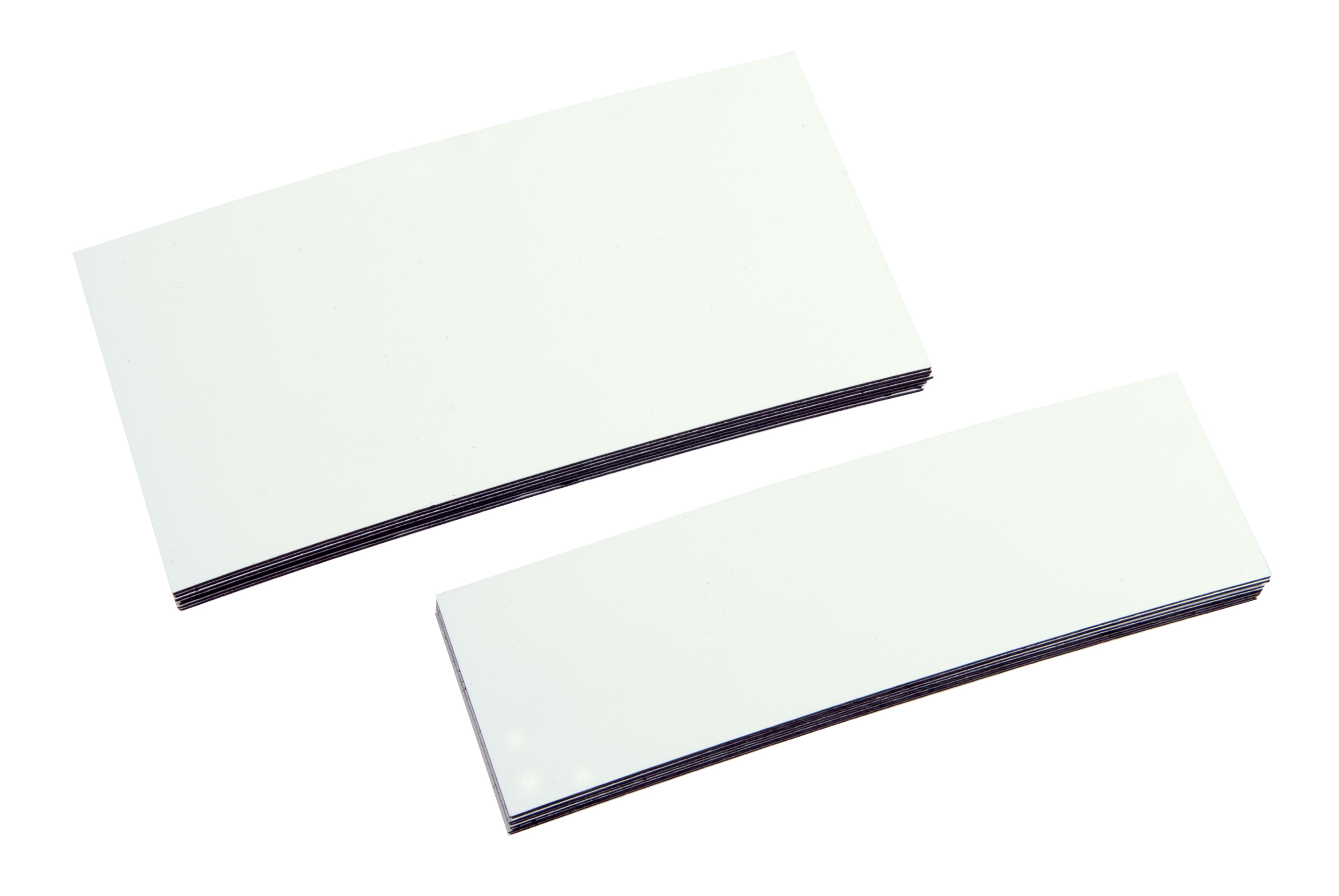 Magnetni skladiščni trak za označevanje regalov, posod in vseh površin, ki omogočajo oprijem magnetov. Nanj je mogoče pisati z običajnimi flomastri.