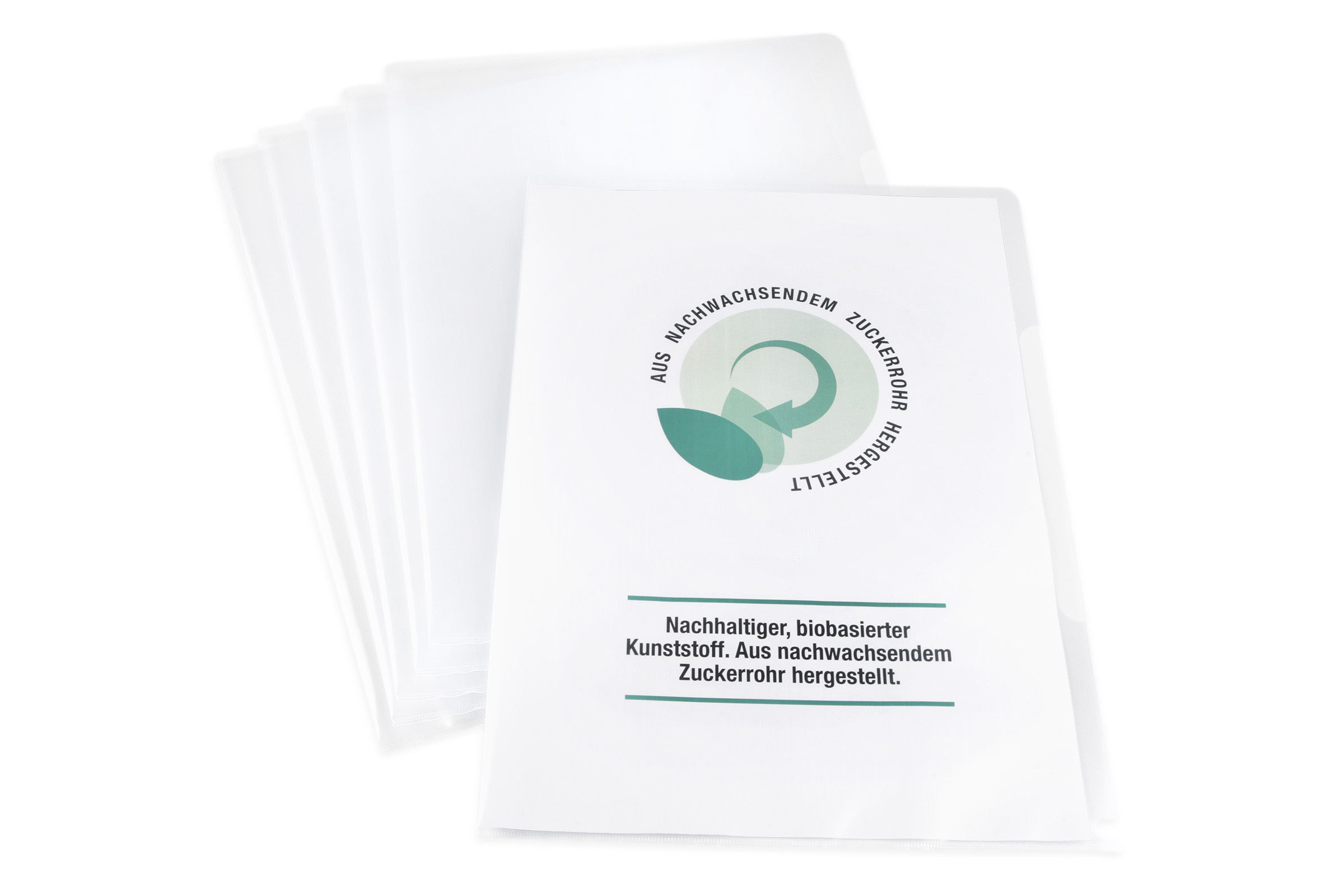 The file and transparent sleeves made of LDPE from renewable sugar cane are a forward-looking alternative to conventional sleeves of this type. They are document-proof and available in two different versions. Format: DIN A4, film thickness 0.10 mm.