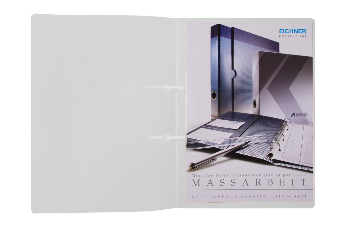 Sturdy strip binder made of environmentally friendly polypropylene. Features innovative strips for kink-free paging through documents. Re-organising and removing single pages is easier than with conventional loose-leaf binders. Filing in a ring binder or file is possible thanks to the integrated filing mechanism.