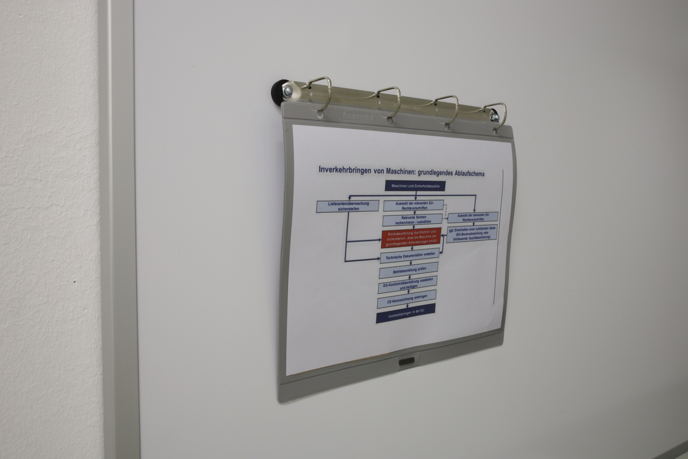 This magnetic circuit diagram pocket features a 4-ring mechanism and reliably holds multi-page documentation. This allows important information to be permanently displayed and other documents to be securely stored.