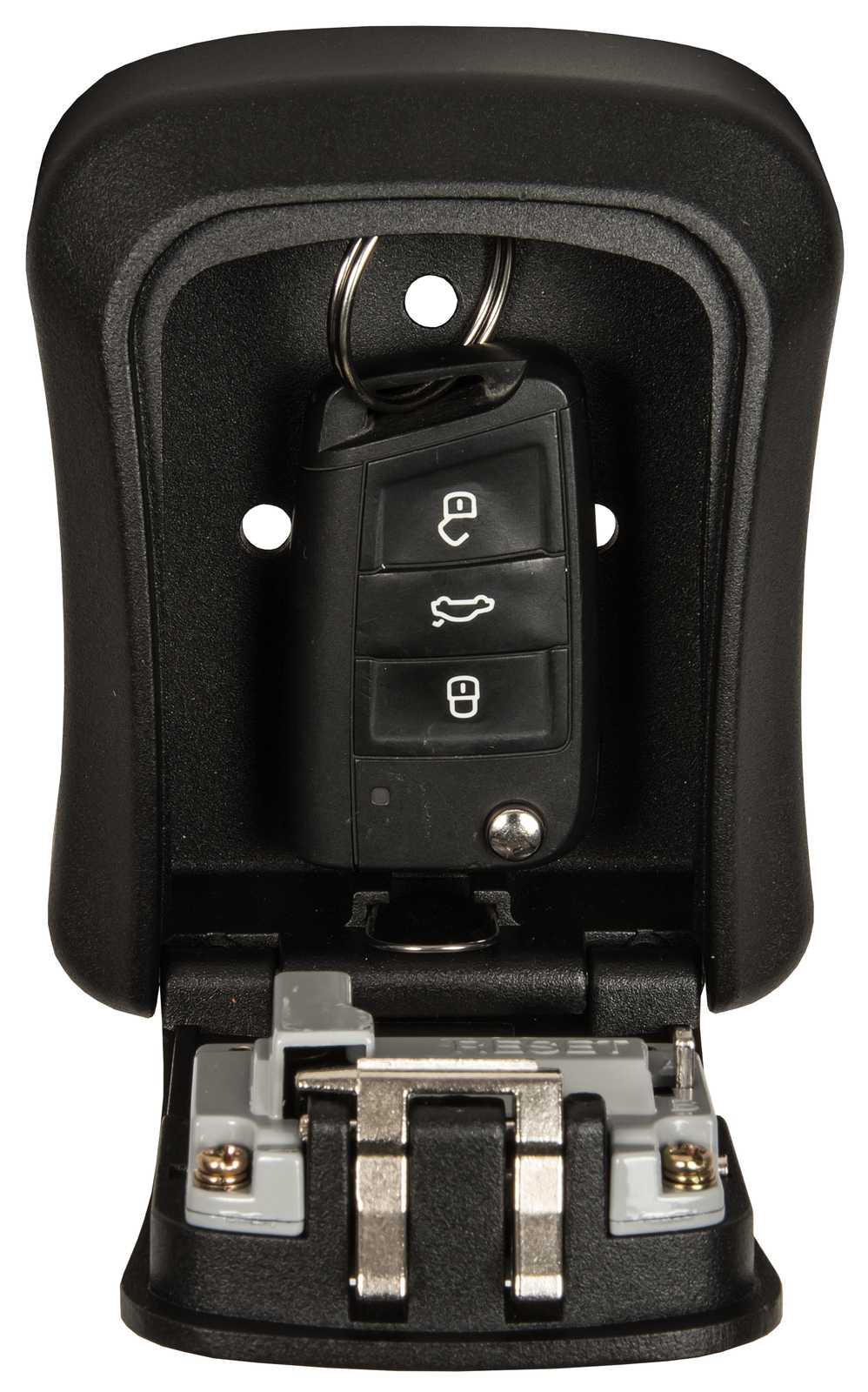 Key safe for wall mounting, including 4-digit-combination lock, for properties like holiday apartments and small hotels.