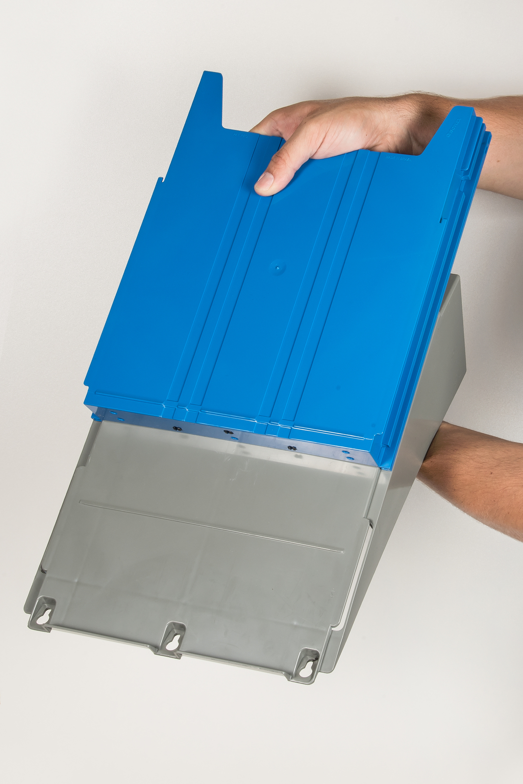 The wall organizer "Big" is the ideal solution for organizing documentation, orders, or similar materials, and is perfectly suited for use in workshops, offices, or warehouses. The system consists of a base module that is mounted to the wall and can hold up to ten colored storage trays. These trays are specifically designed for order sleeves and documentation in DIN A4 format, with a maximum depth of 34 mm, offering plenty of space for bulky documents. Thanks to the different colors of the trays, they can be used to structure according to allocation or priority, ensuring optimal organization. The wall organizer is made from durable, impact-resistant ABS material, ensuring longevity and resilience. Optional labeling clips can also be attached to the trays to further improve clarity. In addition to the standard version, the wall organizer is also available in a flat version suitable for both DIN A4 and DIN A5 documents, making it adaptable to individual space requirements.