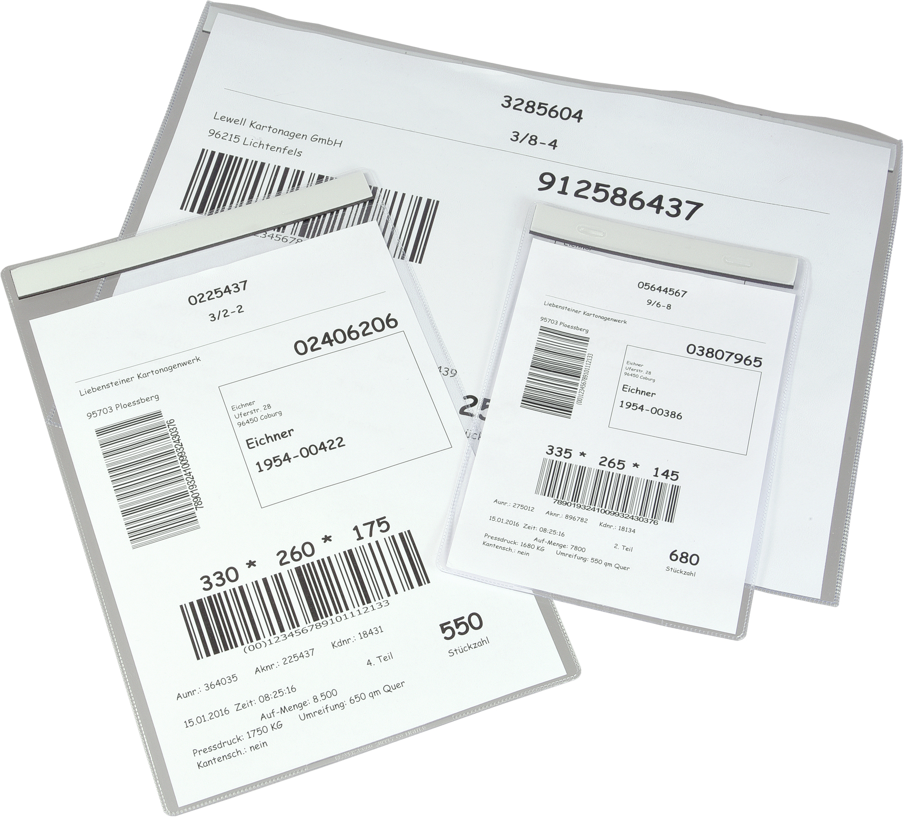 Transparent sleeves or pockets with magnetic strips. Ideal for labelling cupboards and shelves for the storage of working papers, workshop or maintenance documentation.