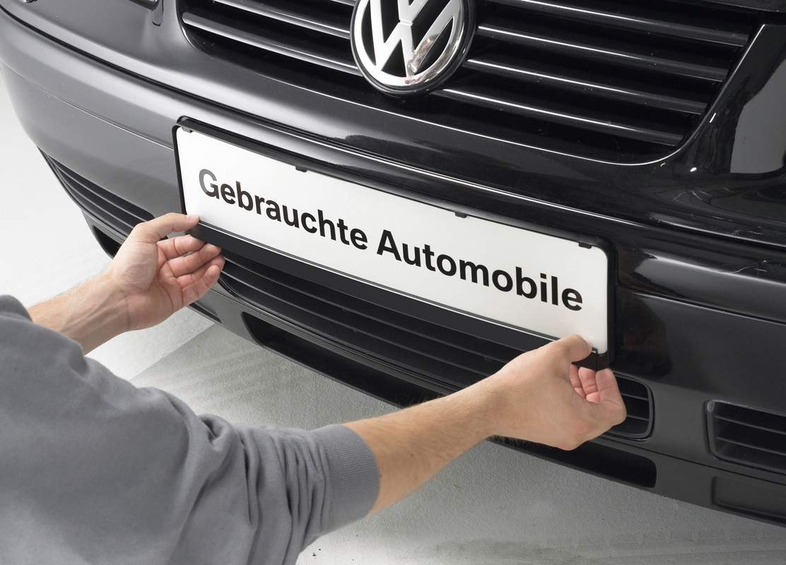EICHNER advertising plates give the customer information about the most important feature of a car at first glance. Whether "One-year-old car", "Air-conditioning", "Automatic", or "Low mileage", it is immediately noticeable and leaves a first impression. Besides the standard prints, individual prints with your logo and company name or your advertising message are possible. Get in touch with us, we are happy to help implement your design ideas.