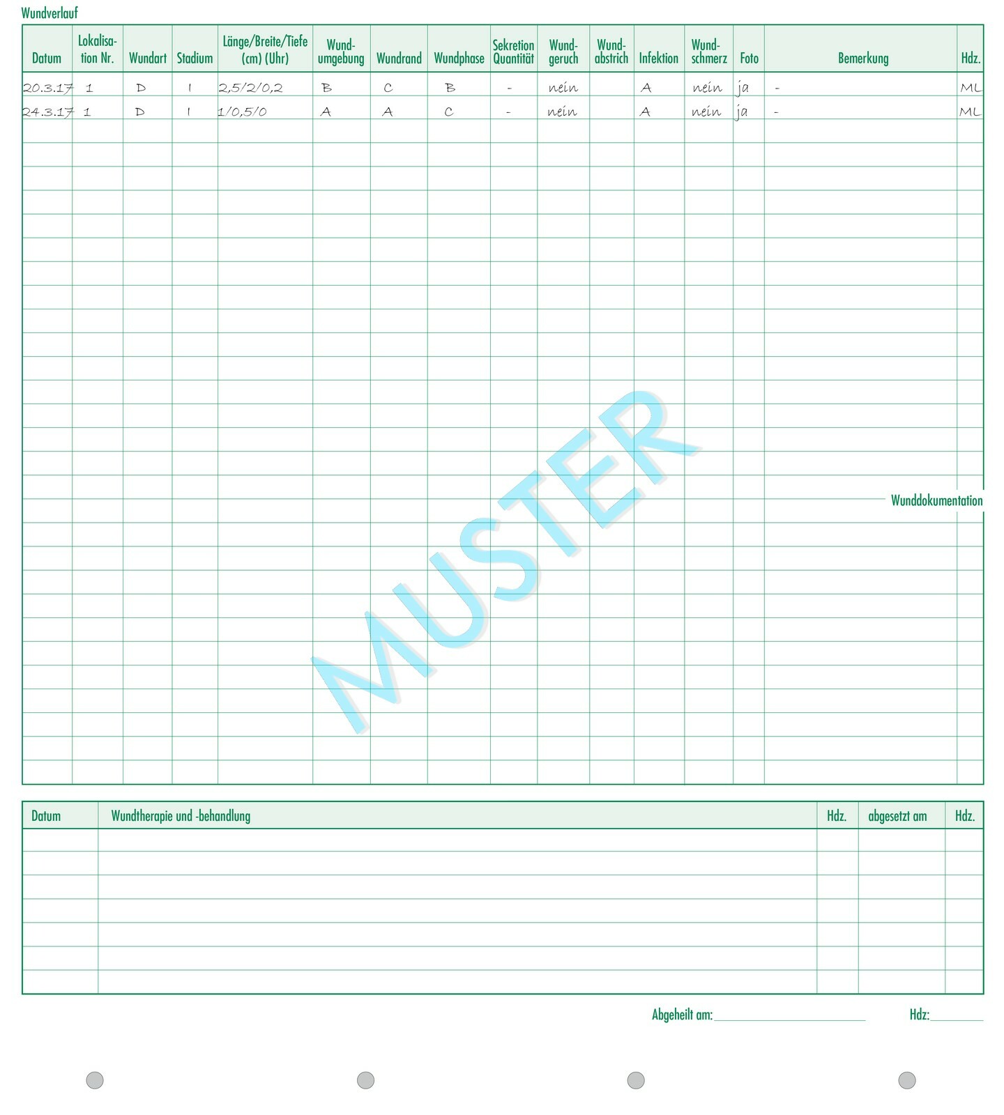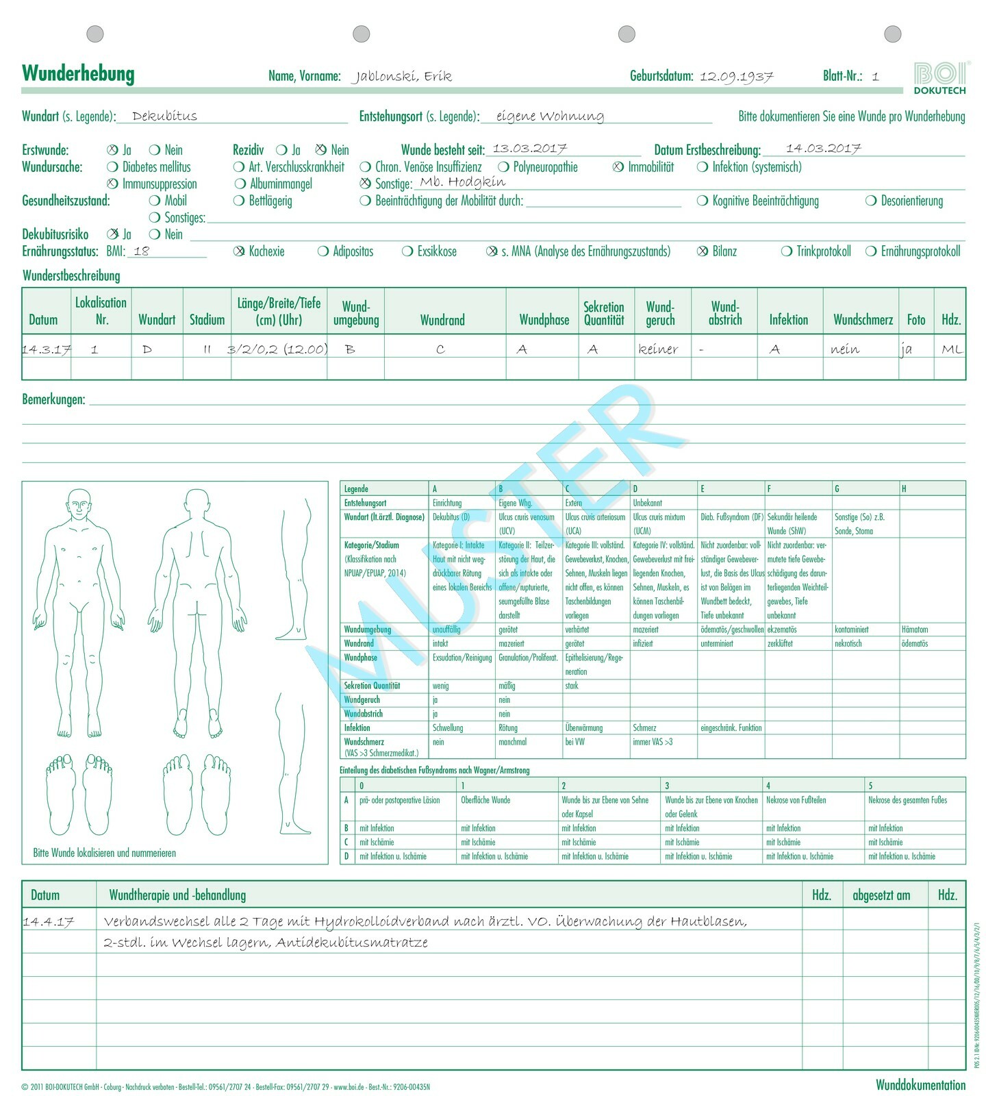 Das Dokumentationsblatt Wunderhebung dient der Beschreibung unterschiedlicher Wundarten wie z.B. Ulcus cruris oder Dekubitus sowie des Wundheilungsverlaufs.