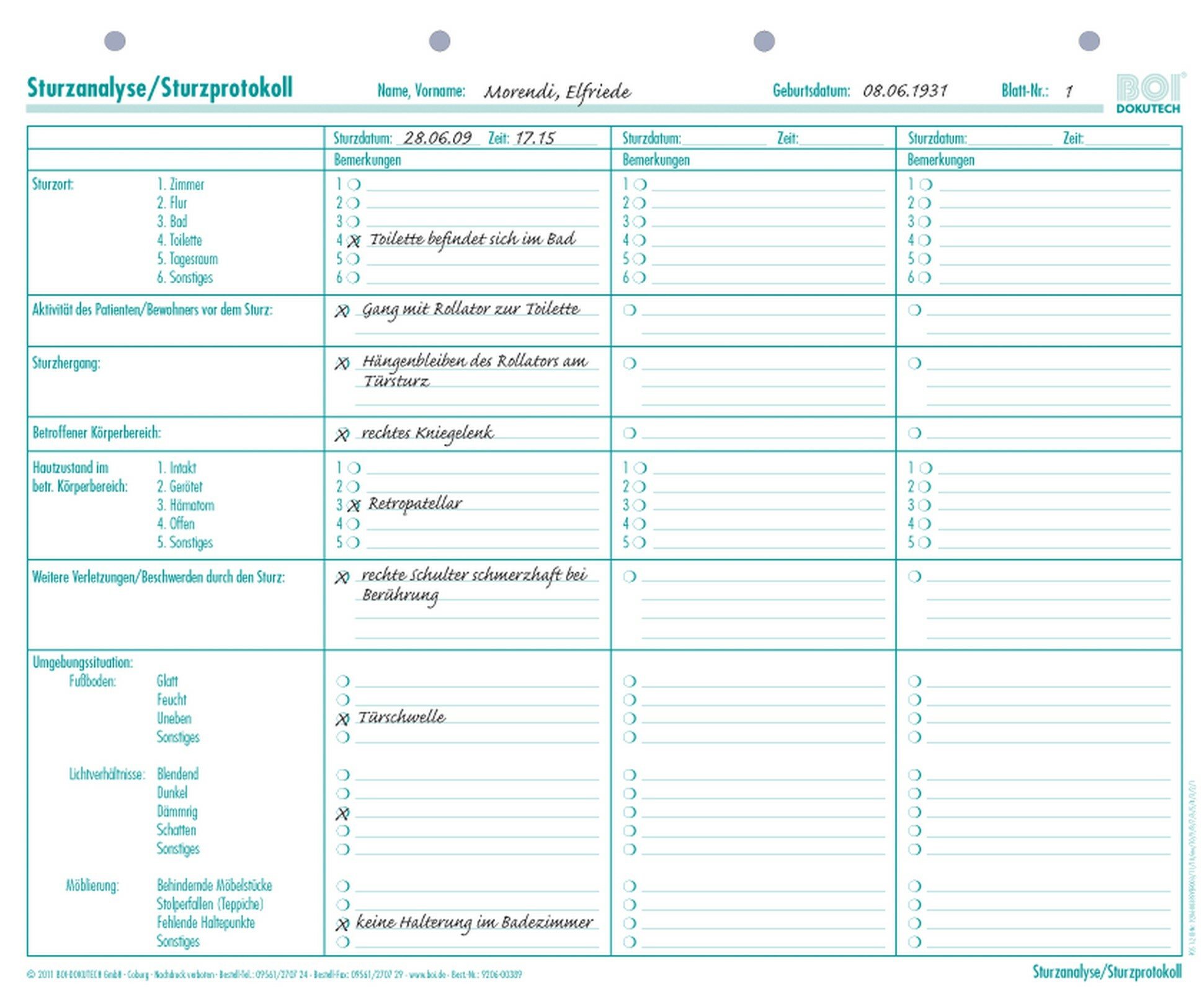 Die detaillierte Sturzanalyse gibt Ihnen einen schnellen Überblick über die Effizienz der Maßnahmen zur Sturzprävention.