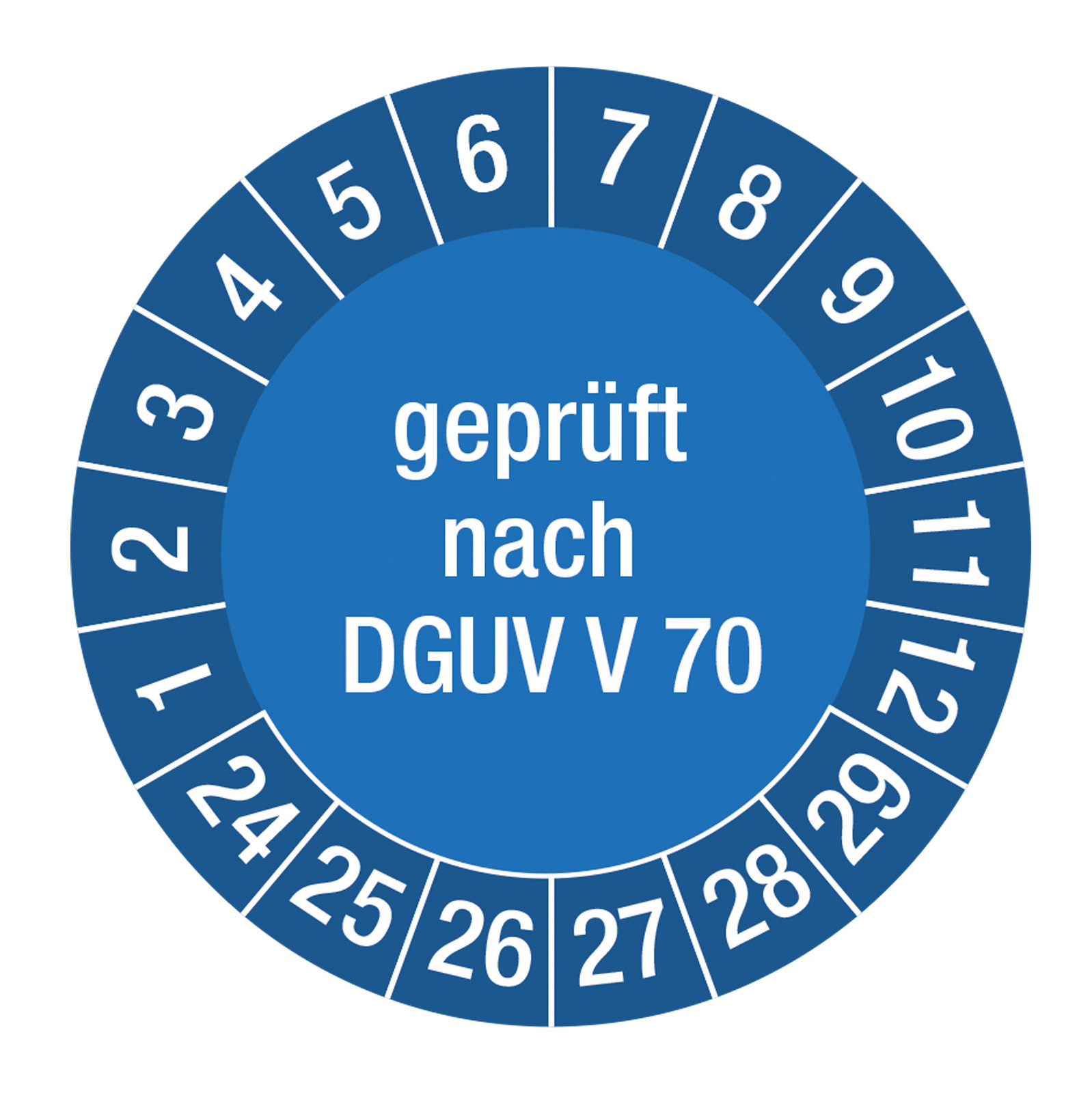 Die UVV-Sticker Nächste Wartung zeigen zuverlässig an, wann die nächste Kontrolle nötig ist. Nach der Untersuchung kann die alte Monatsangabe auf dem Hauptsticker bequem überklebt werden. Das bietet Praktikabilität für den Prüfer und Sicherheit für den Kunden.