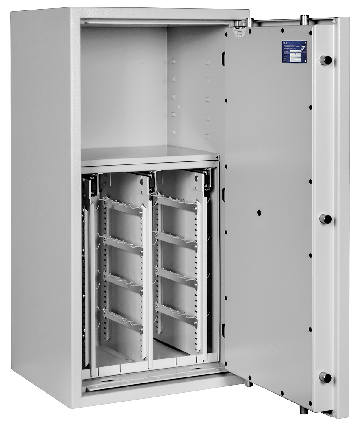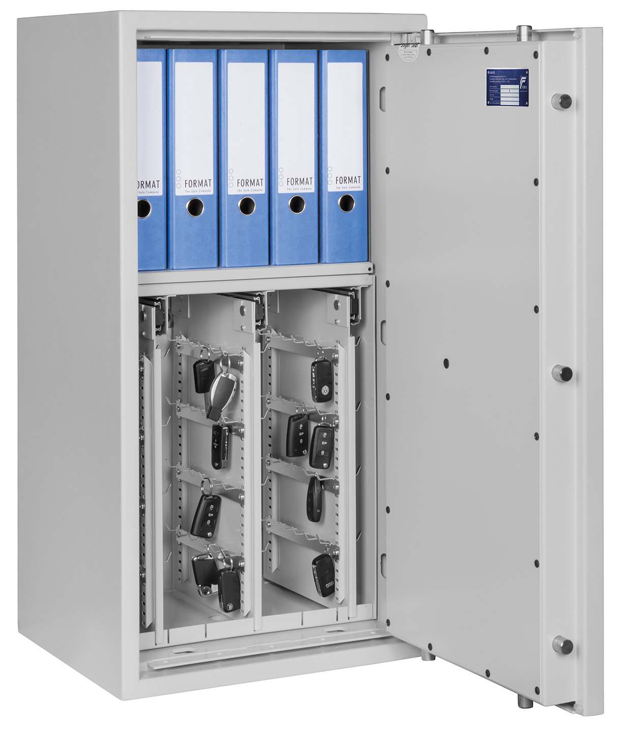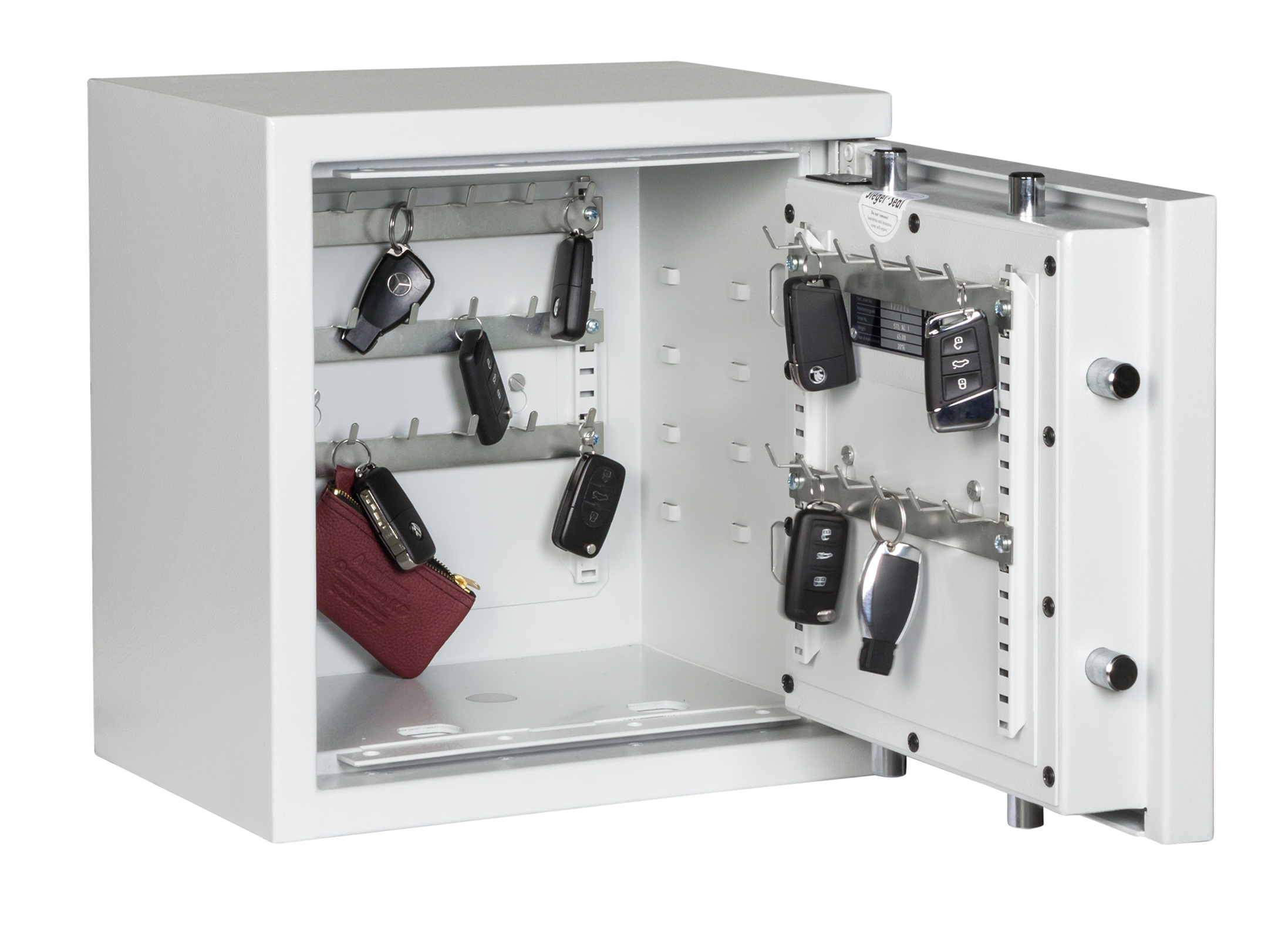 Wertschutz-Schlüsseltresore nach EN 1143-1 sind ideal zur gewerblichen Nutzung und ermöglichen die übersichtliche Sortierung von Autoschlüsseln und Schlüsselbunden. Die Modelle werden mit ausziehbaren Schlüsselwänden ausgestattet oder haben die speziellen Auto-Schlüsselhakenleisten an der Rückwand und Türinnenseite verbaut. Für die Nutzung von 30 - 144 Schlüsseln und einer zusätzlichen Rückwandverankerung inkl. Verankerungsmaterial.