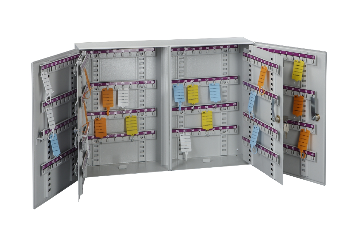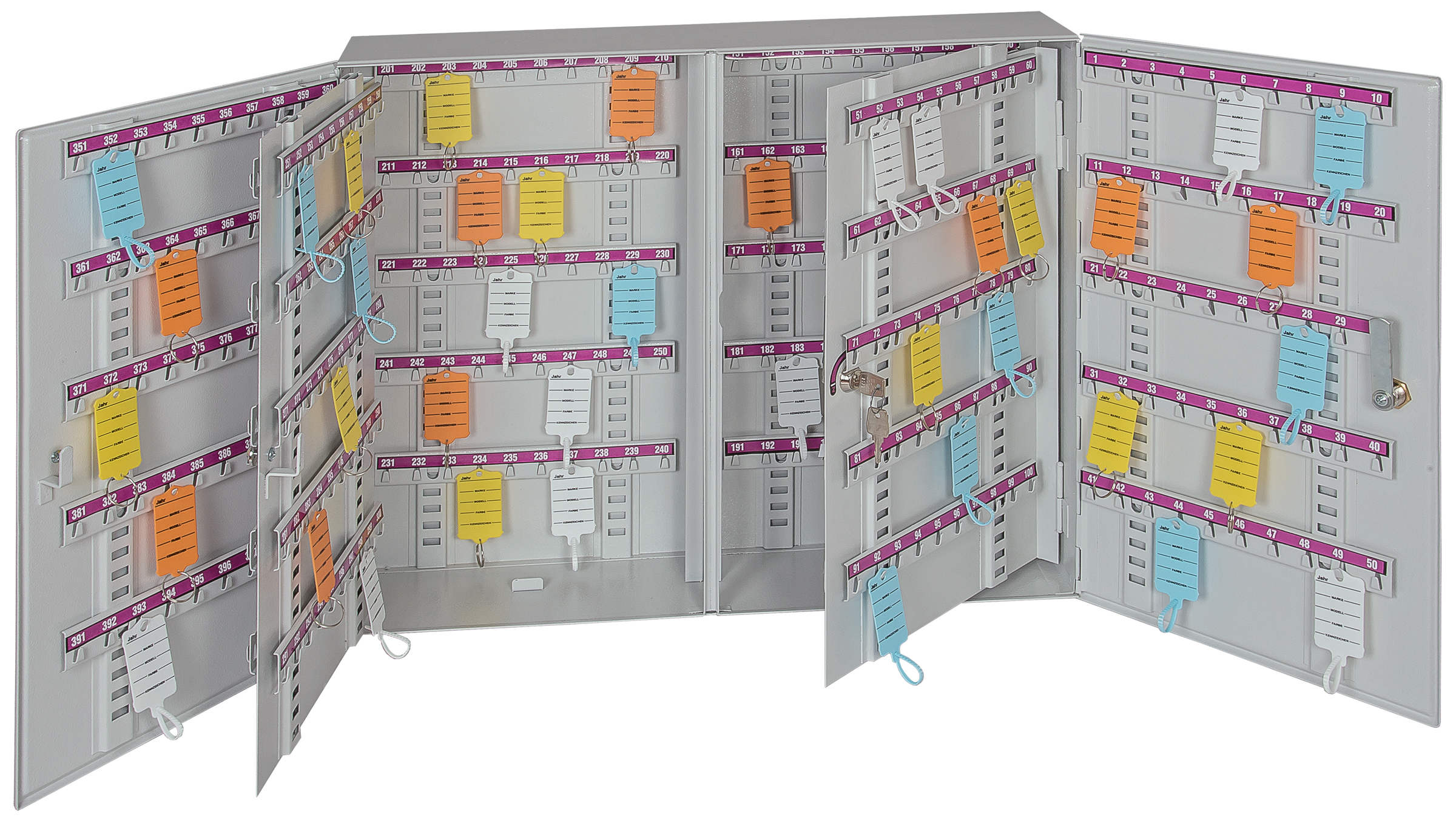 Verwaltung von Schlüsseln - am besten mit den Schlüsselkästen von EICHNER. Wir bieten Ihnen optimale Lösungen für das Schlüsselmanagement von heute. Die hochwertige Schlüsselkasten-Serie für praktisch jeden Bedarf. Die Türen und der Korpus sind aus robustem, einwandigem Stahlblech, abschließbar durch ein Sicherheits-Zylinderschloß mit 2 Schlüsseln. Die Hakenleisten sind höhenverstellbar und können somit einfach auf Ihre Bedürfnisse angepasst werden. Einige Modelle bieten ausschwenkbare, abnehmbare Zwischenwände, die zusätzlich abschließbar sind. Alle Modelle sind zur Wandbesfestigung vorgesehen und sind mit einer schlag- und kratzfesten Pulverbeschichtung in RAL 7035 (lichtgrau) versehen.