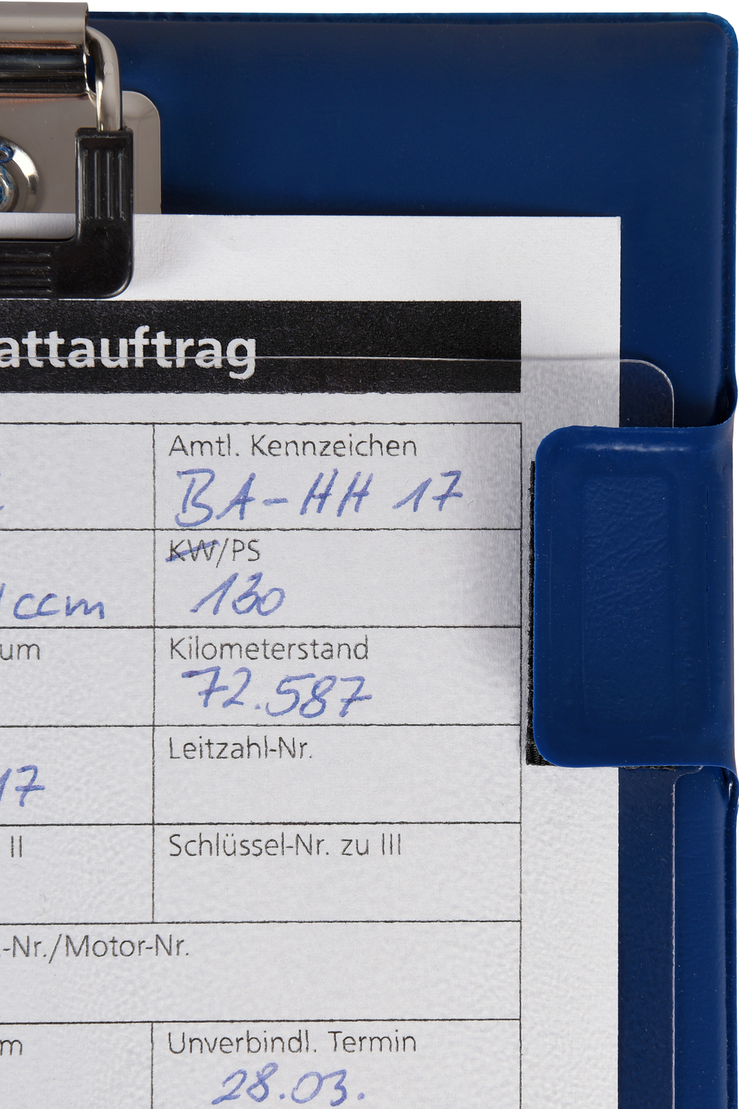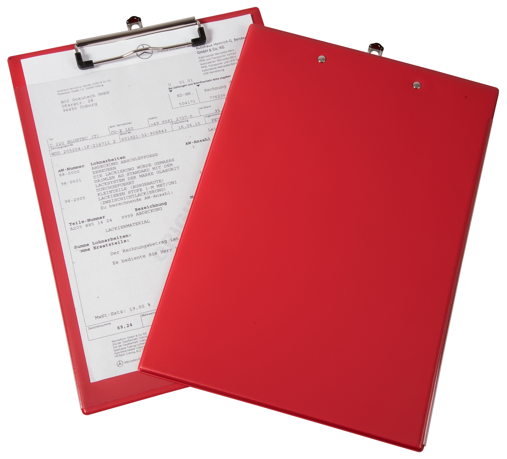 Mapa za delovni nalog "Easy Open" s prozorno zaščitno folijo po celotni sprednji površini. Trpežna izvedba, idealna za skladišča in logistične oddelke, pritrditev prozorne folije s stranskimi sprijemnimi trakci