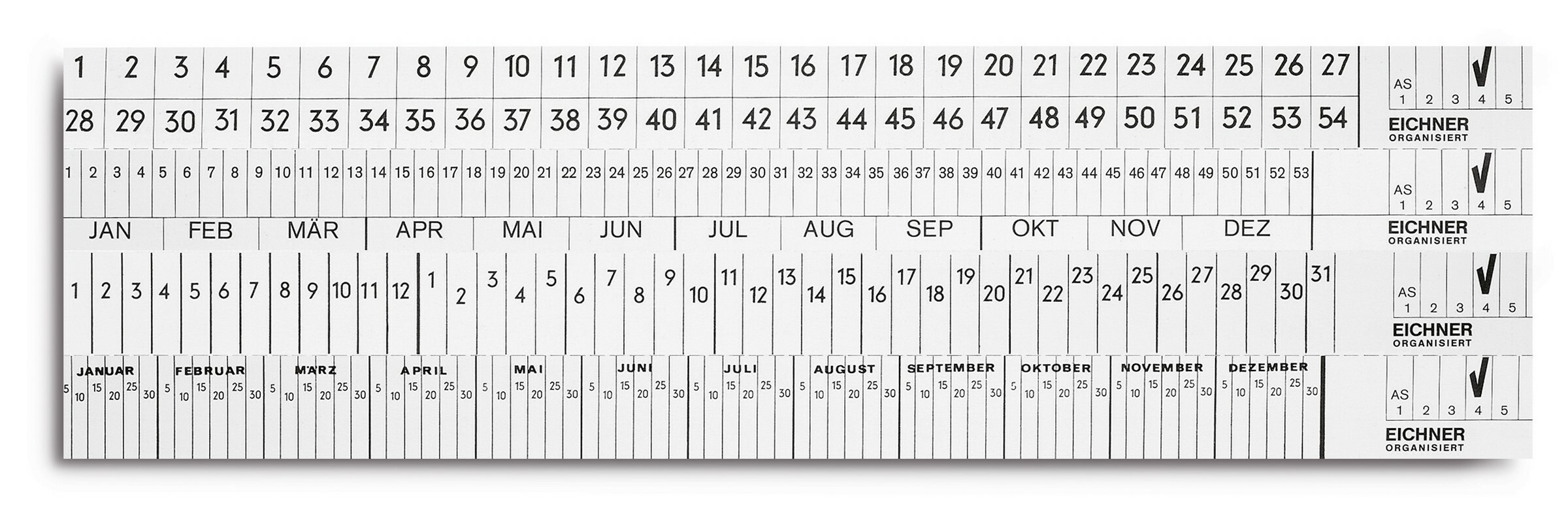 Z izbiro planskega in datumskega traku določite namen uporabe viseče mape. Naj gre za shranjevanje mape za vozilo ali datumske mape. Planski trak zagotavlja preprosto nadzorovanje vseh pomembnih namenov uporab. Trakovi so za lažjo uporabo že naluknjani ter jih je mogoče hitro in preprosto vstaviti.