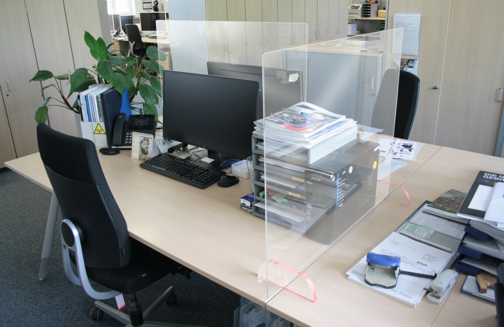 Higienska pregrada, ki jo lahko preprosto postavite na pisalno mizo ali delovno mesto, zagotavlja zanesljivo zascito pri delu