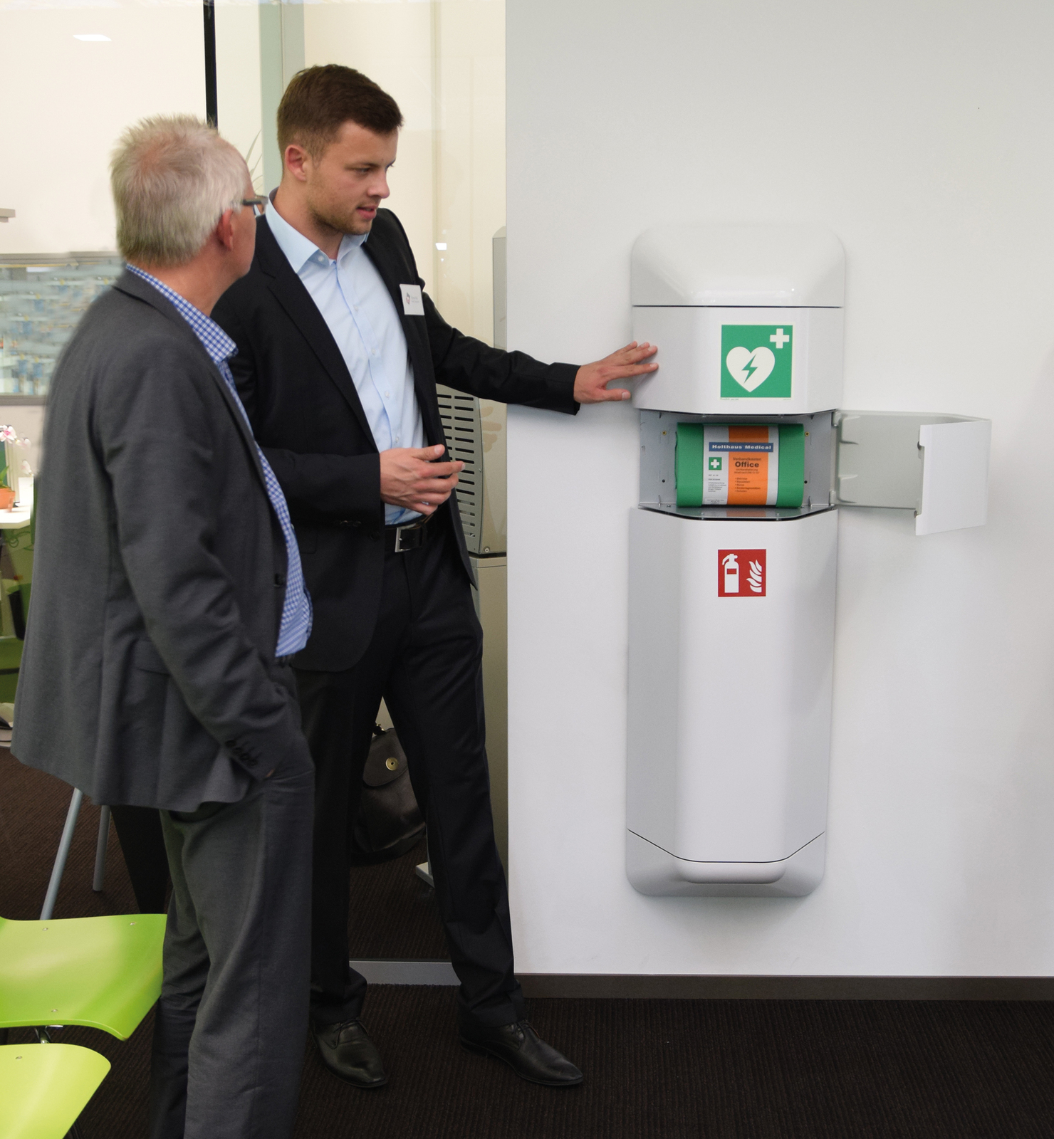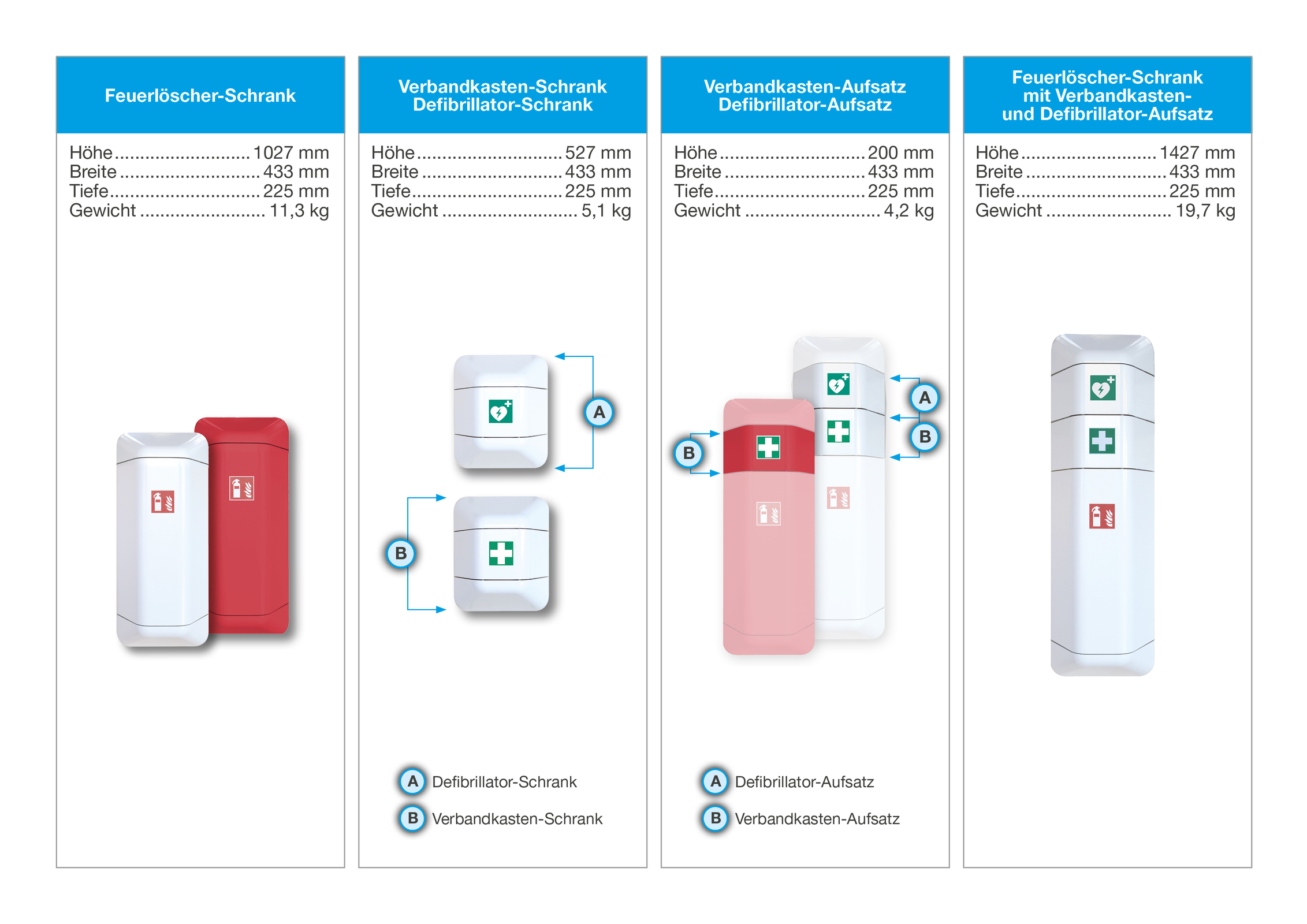 Popolno zlitje videza in uporabnosti. Glede na prostor in potrebe je mogoče oblikovati omarice HELP po meri. Modula za pribor za prvo pomoč in defibrilator sta prilagodljiva in dopolnjujeta omarico za gasilni aparat. Omarica HELP omogoča preprosto odpiranje ter prepriča z zelo dobro obdelavo in kakovostjo.