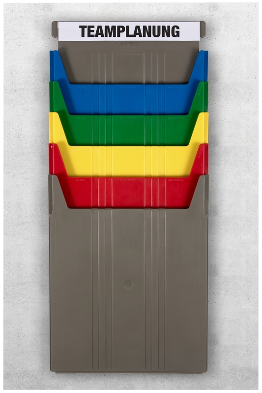 Stenski razvršcevalnik "Flat" je idealna rešitev za pregledno shranjevanje dokumentacije, narocil ali podobnih dokumentov in je popolnoma primeren za uporabo v delavnicah, pisarnah ali skladišcih. Sistem je sestavljen iz osnovnega modula, ki je trdno pritrjen na steno, in lahko vsebuje do deset barvnih odlagalnih pladnjev. Pladnji so posebej zasnovani za mape z narocili in dokumentacijo v formatu DIN A4 in imajo najvecjo globino 9 mm, kar omogoca prostorsko varcno montažo. Zahvaljujoc razlicnim barvam odlagalnih pladnjev lahko ti služijo za strukturiranje po dodelitvi ali prioriteti, kar omogoca optimalno organizacijo. Stenski razvršcevalnik je izdelan iz robustnega, udarno odpornega ABS-materiala, ki zagotavlja dolgotrajnost in odpornost. Po želji so na voljo tudi oznacevalne sponke, ki jih je mogoce pritrditi na pladnje za boljšo preglednost. Poleg standardne razlicice je stenski razvršcevalnik na voljo tudi v manjši razlicici za DIN A5 ter v globlji razlicici, ki je primerna za DIN A4.