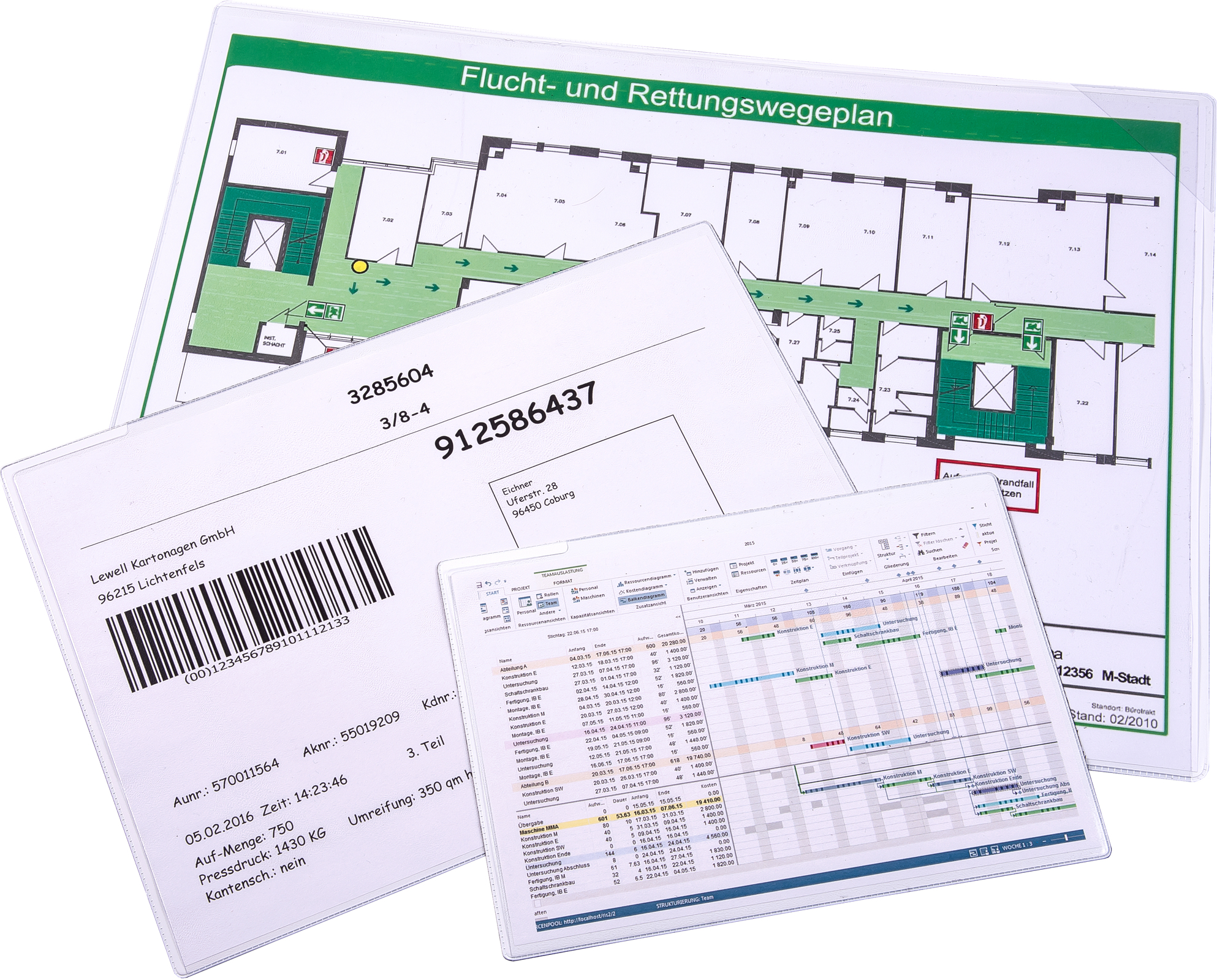 Magnetni žepi s prozorno folijo in magnetnim hrbtiščem so kot nalašč za namestitev na kovinske posode, mrežaste zaboje, regale ali stroje. Z njimi boste hitro in pregledno pritrdili dokumentacijo o vzdrževanju, navodila za uporabo in podobno na vidno mesto. Razširljiva guba omogoča vstavljanje več dokumentov, na primer navodil za uporabo ali načrta za vzdrževanje ipd.