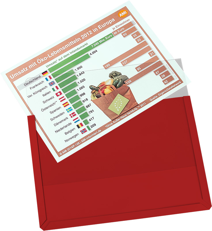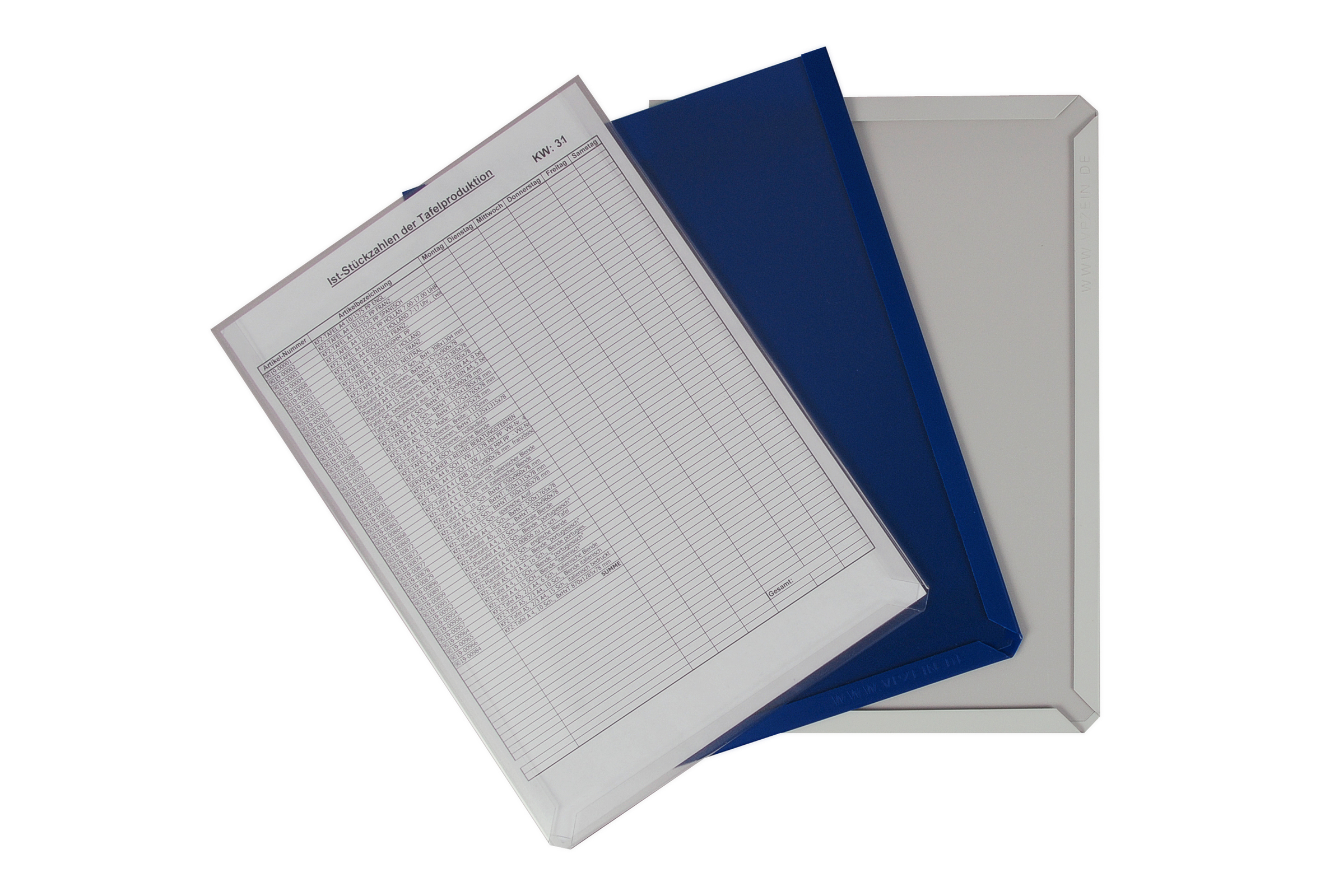 Prozorni žep je na treh straneh zarobljen, na hrbtni strani pa ima zmogljiv magnetni nosilec. Prozorna prekrivna folija ščiti pred umazanijo. Jasna in čista predstavitev dokumentov. Vsebino je mogoče hitro zamenjati.