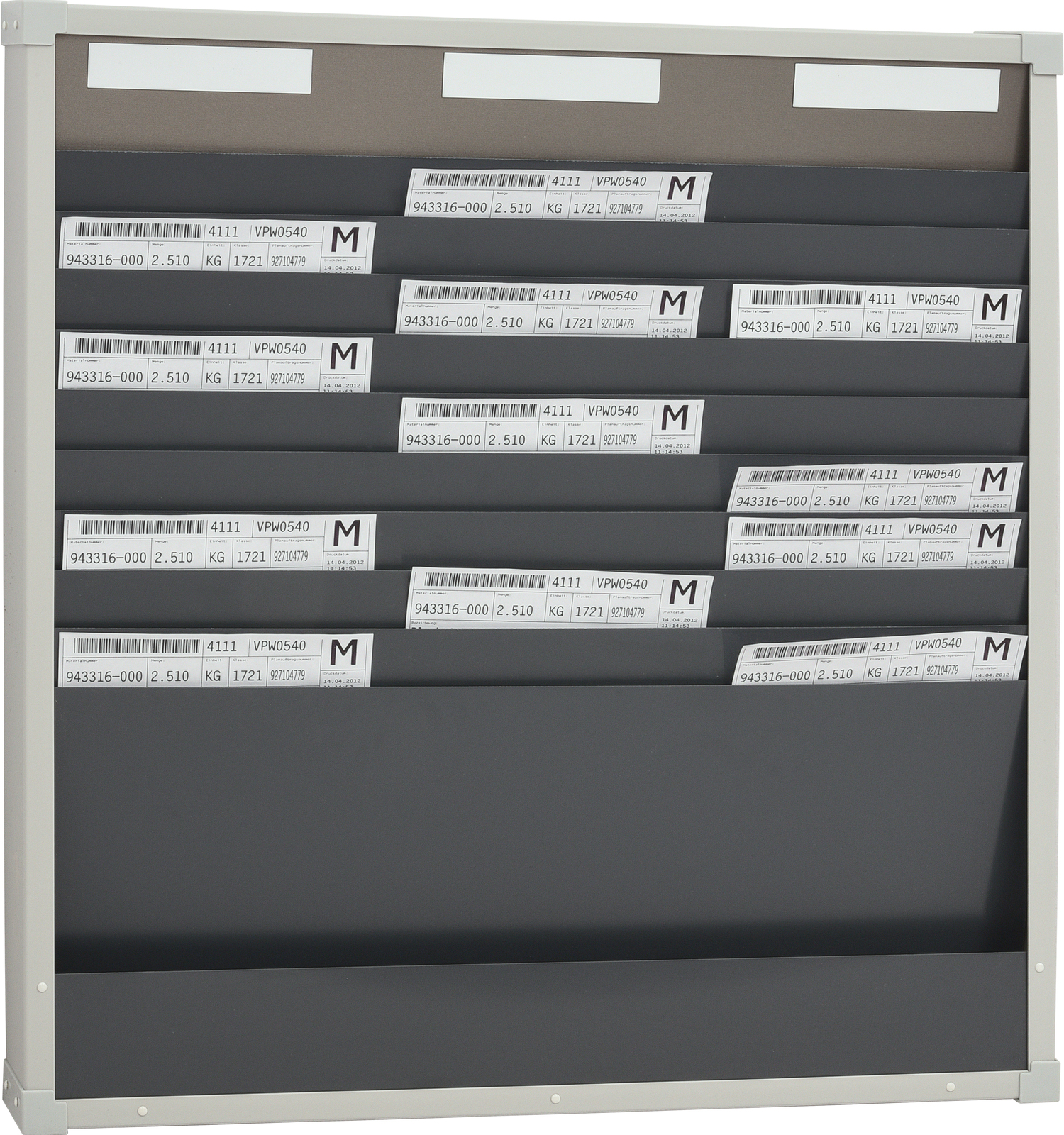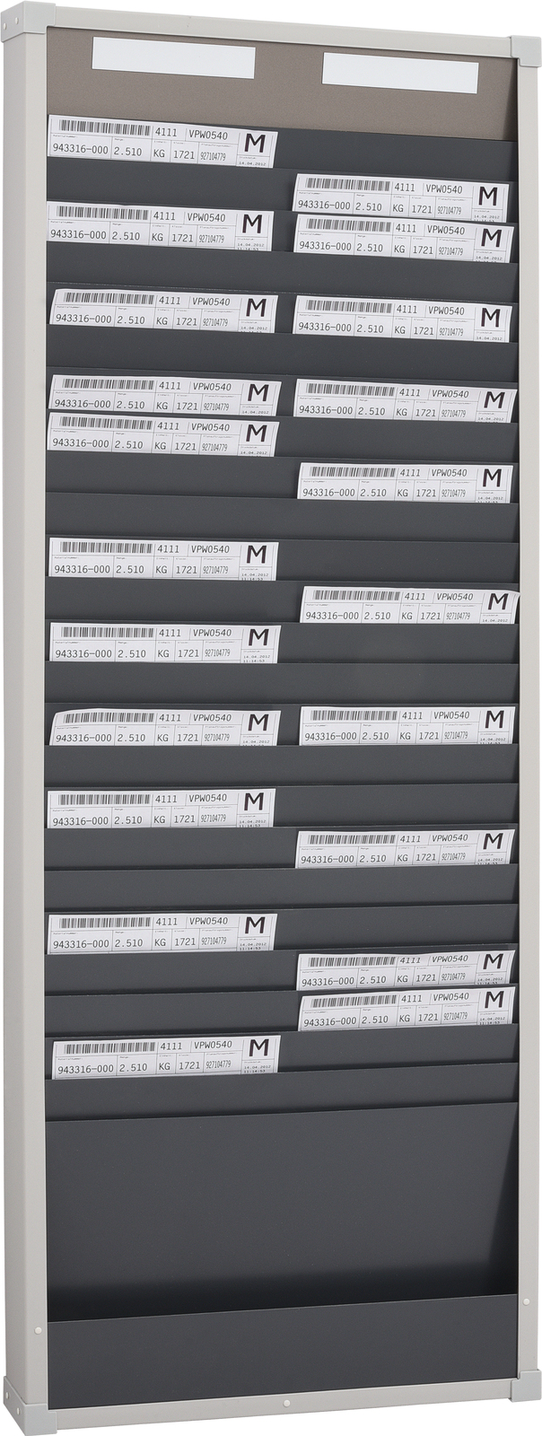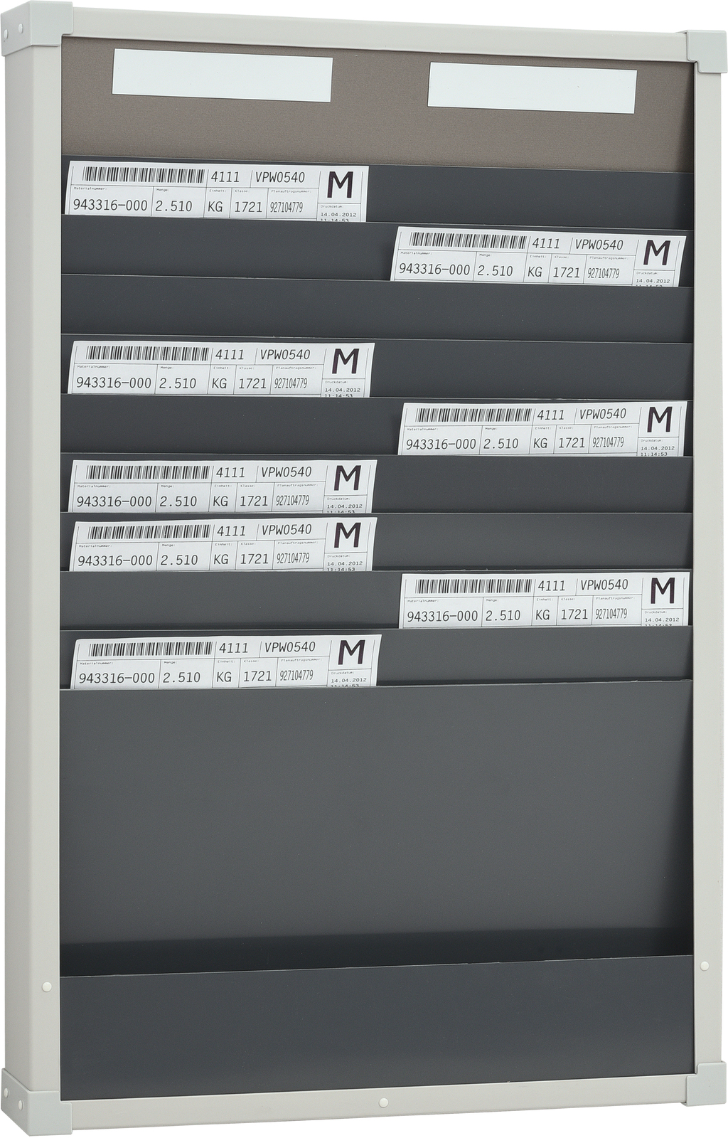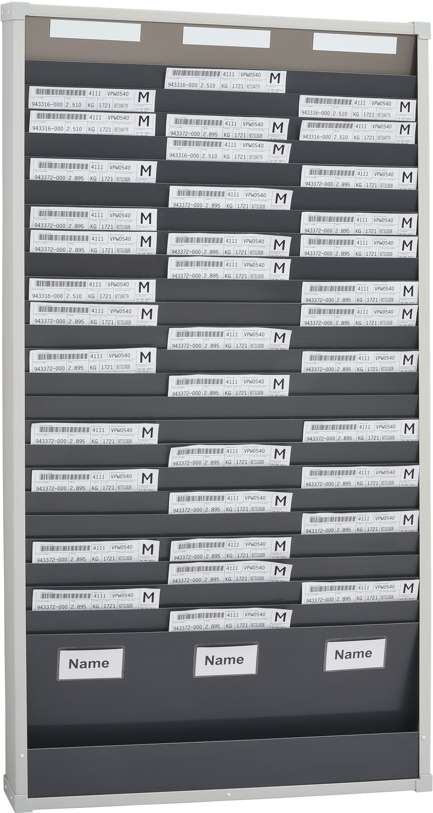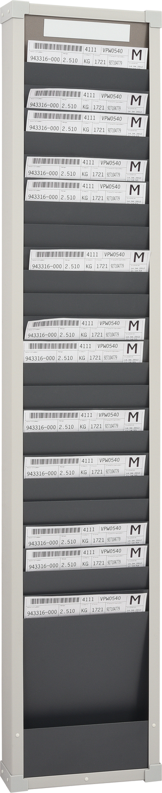Kartična tabla je na voljo z 1, 2 in 3 stolpci ter 10 oz. 25 razdelki za dokumente velikosti A4 pokončno. Vidni rob dokumenta znaša 40 mm in služi hitremu prepoznavanju. Dvo- in trostolpični segmenti imajo ločevalnike, globina posameznih razdelkov pa je 6 mm. Izbirni kazalni segment služi preprostemu načrtovanju po dnevih, osebja ali proizvodnje. Table lahko poljubno združujete. Vsaki tabli so priloženi ustrezni magnetne oznake. Te je mogoče kupiti tudi posebej. Tablo je mogoče preprosto in hitro pritrditi na steno s pomočjo profila za stensko montažo.